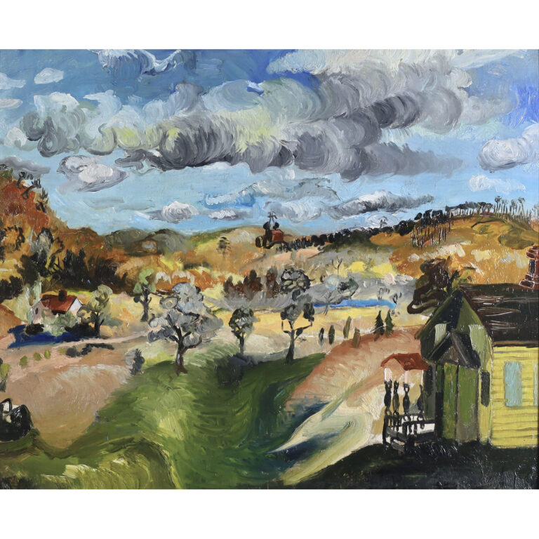 Philip Howard (Blashki) Evergood was one of the leading American modernists of the 20th century. He was born in New York City and was raised in London, England where he moved in 1909 with his parents. Evergood studied art at Eton University, Cambridge University, and Slade School of Fine Art. Returning to New York in 1923 Evergood studied with George Luks and William von Schlegell at the Art Students League. From 1924 to 1926 he traveled in Europe and studied in Paris at the Academie Julian and again lived abroad from 1929 to 1931. Evergood was especially influenced by the Spanish artist El Greco and his influences are apparent in Evergood’s social realist works he is best known for. During the 1930s Evergood was involved with the WPA. Politically active Evergood served as President of the New York Artists Union and taught art at various institutions in the 1940s. In 1952 Evergood moved to Connecticut where he spent the remainder of his life.