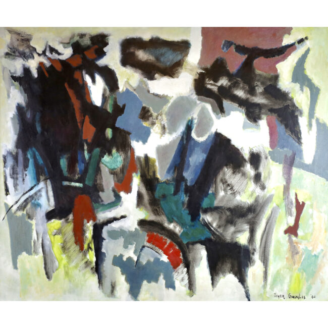 Boyer Gonzales Jr. – ‘Cornet’ 1960 Bold and colorful abstract expressionist painting by American artist and educator, Boyer Gonzales Jr. Boyer Gonzales Jr., (1909-1987), was born in Texas, and was immediately immersed in art. His father, Boyer Gonzales Sr. was raised in a prominent American merchant family and was able to travel the world, working…