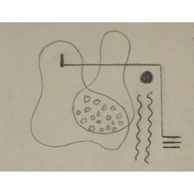 Janet Todd Young – Biomorphic Drawing #1 Pencil drawing on paper. Circa 1930s. From a sketchbook belonging to the artist. Acquired from the family of the artist. Framed. Measures 2.25 x 3 inches sight size, and 9 x 9.75 x 1.5 inches overall including framing. Price $500 Click on price to purchase or inquire.