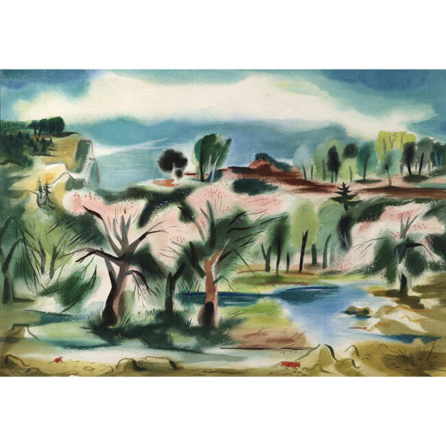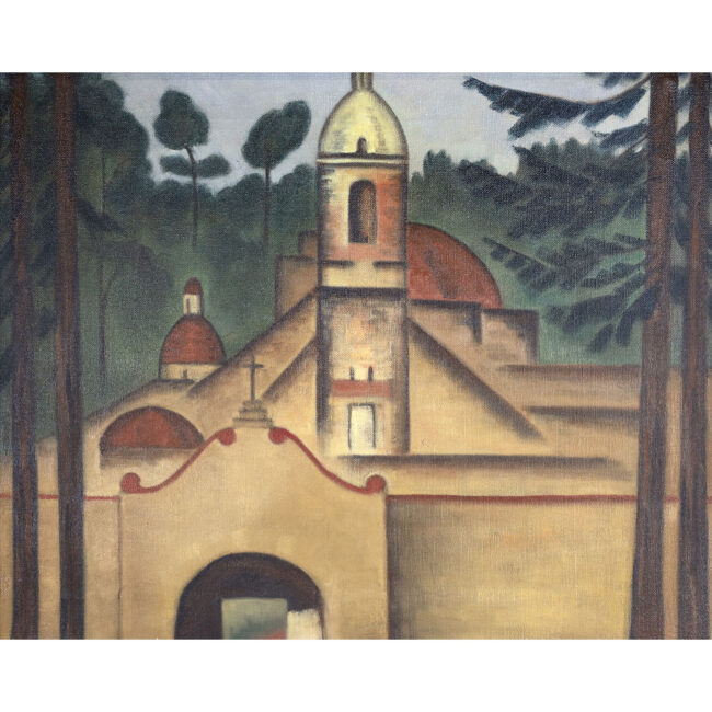 Kedma Dupont – Desierto de los Leones Modernist painting of an abandoned monastery in Mexico City, Mexico by Kedma Dupont. Titled ‘Desiert de los Leones’ (Desert of the Lions) 1930s Oil on canvas. Recently cleaned. Housed in the original frame. Measures 15.35 x 19.35 inches sight size, and 18.75 x 22.75 x 1.75 inches overall…