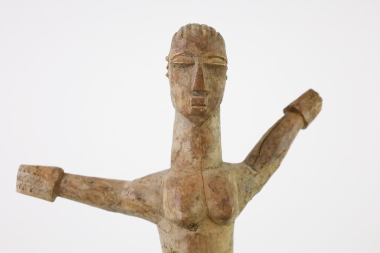 Bateba can have a wide range of purposes. This bateba, a Ti Puo or Duntundara, (dangerous bateba), identified by his outstretched arms, was made to protect the owner from harmful forces, disease, and/or witchcraft.