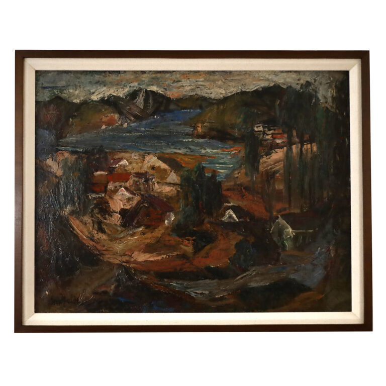 Measures 16.5 inches by 19.5 inches sight size, and 19 inches by 24 inches by 1.5 inches overall including the frame.
