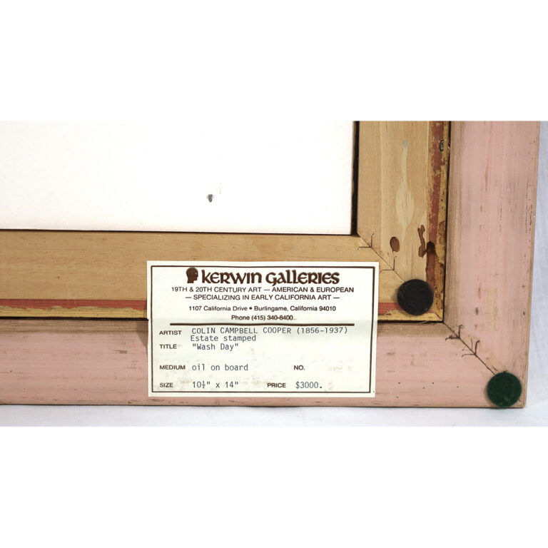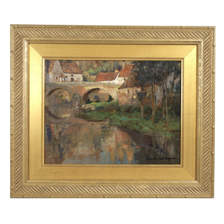 A bucolic scene of of villagers on wash day, likely painted on Cooper’s trip to Europe in 1912.