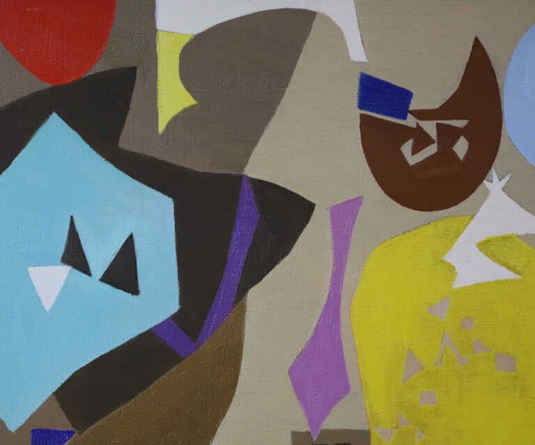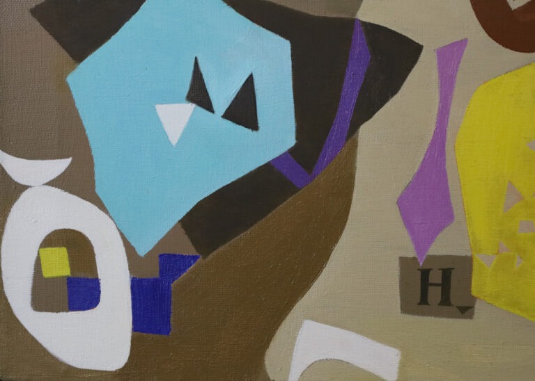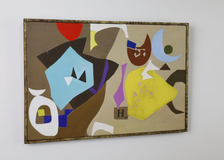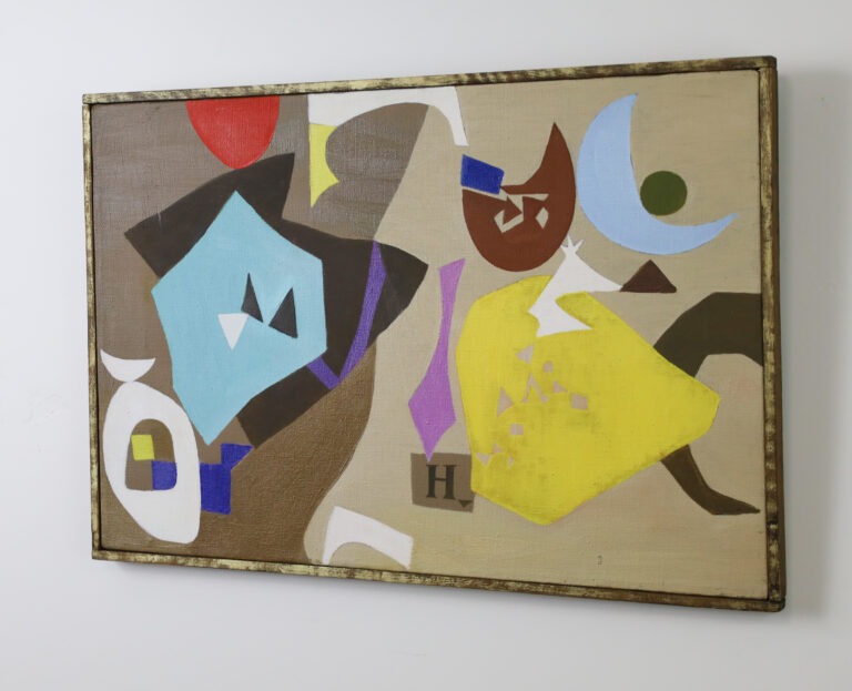 John Hansegger, aka Hans Egger, John Konstantin Egger, 1908-1989, was a Swiss-born modernist painter. Hansegger was educated in Europe and had his first one-man show in Switzerland in 1928. He later joined the Kunstler-Vereinigung in Munich, Germany in 1933 where he participated in several exhibitions. In 1937 was in Paris, France where he joined other noted painters of the Surindependents movement including Paul Klee. Also in 1937, Hansegger joined the Confederation of Modern Swiss Artists in Zurich, known as ‘Allianz’. Allianz was an important group of forward-thinking modernists advocating the ideas of ‘concrete art’. The group remained active and exhibiting through the 1950s and included such avant-gardes as Paul Klee, Le Corbusier, Gérard Vulliamy, Kurt Seligmann, Max Bill, Leo Leuppi, Sigfried Giedion, Walter Bodmer, Camille Graeser, Richard Paul Lohse, Sophie Taeuber-Arp, and Verena Loewensberg.