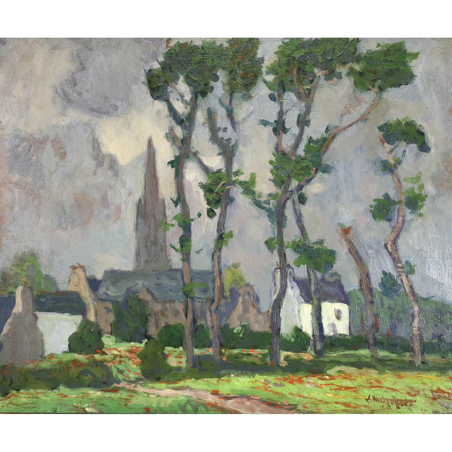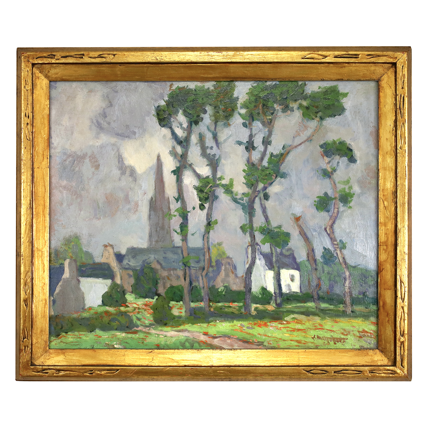 A delightful landscape oil painting by Japanese-American artist Kazuo Matsubara titled ‘Chapel Through the Trees’.