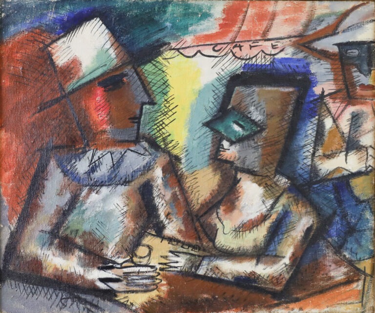 This work, and oil on canvas, is titled ‘At the Cafe’ and was created in 1933.