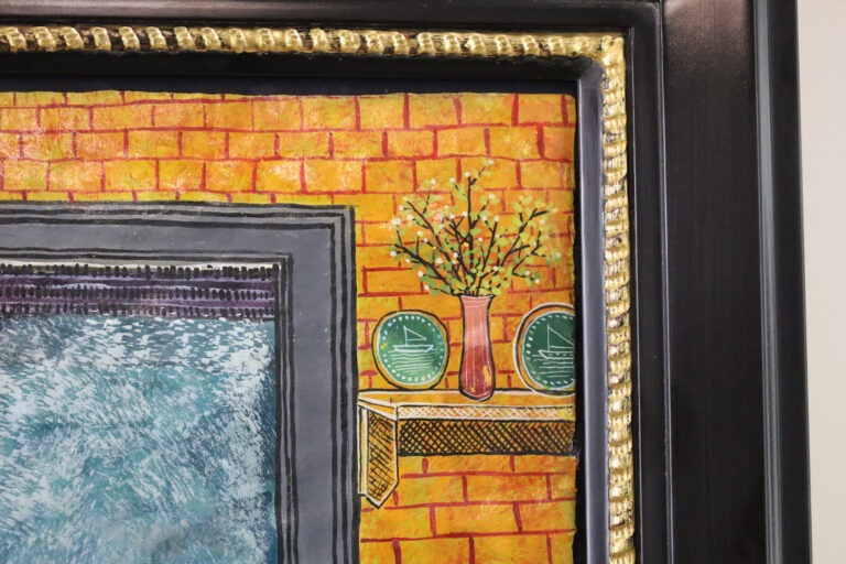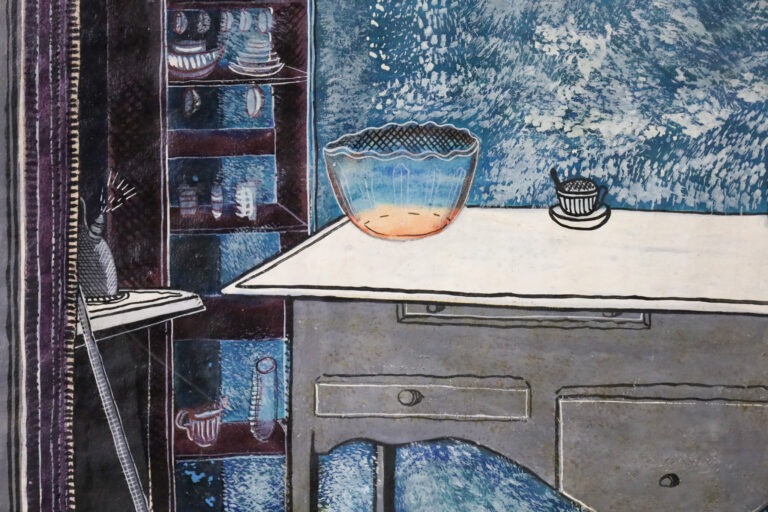 This work is an oil on heavy paper and shows Gasparo’s penchant for patterning and color.
