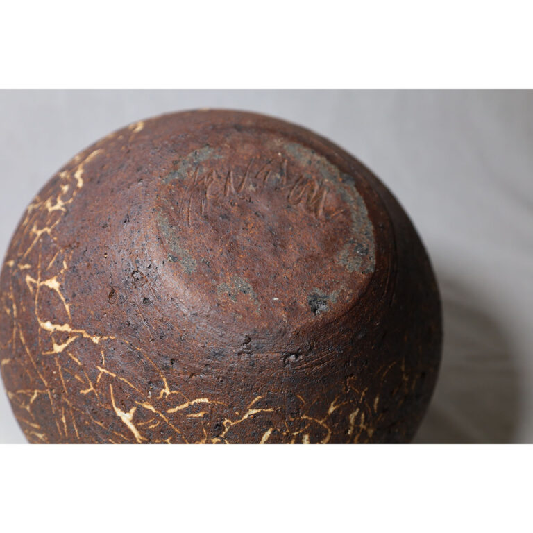 An early pottery vessel with abstract swirl decoration.