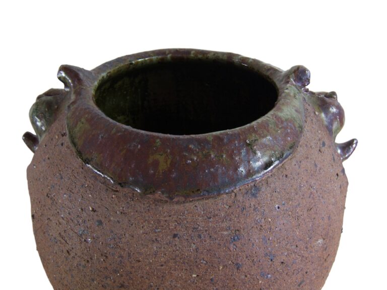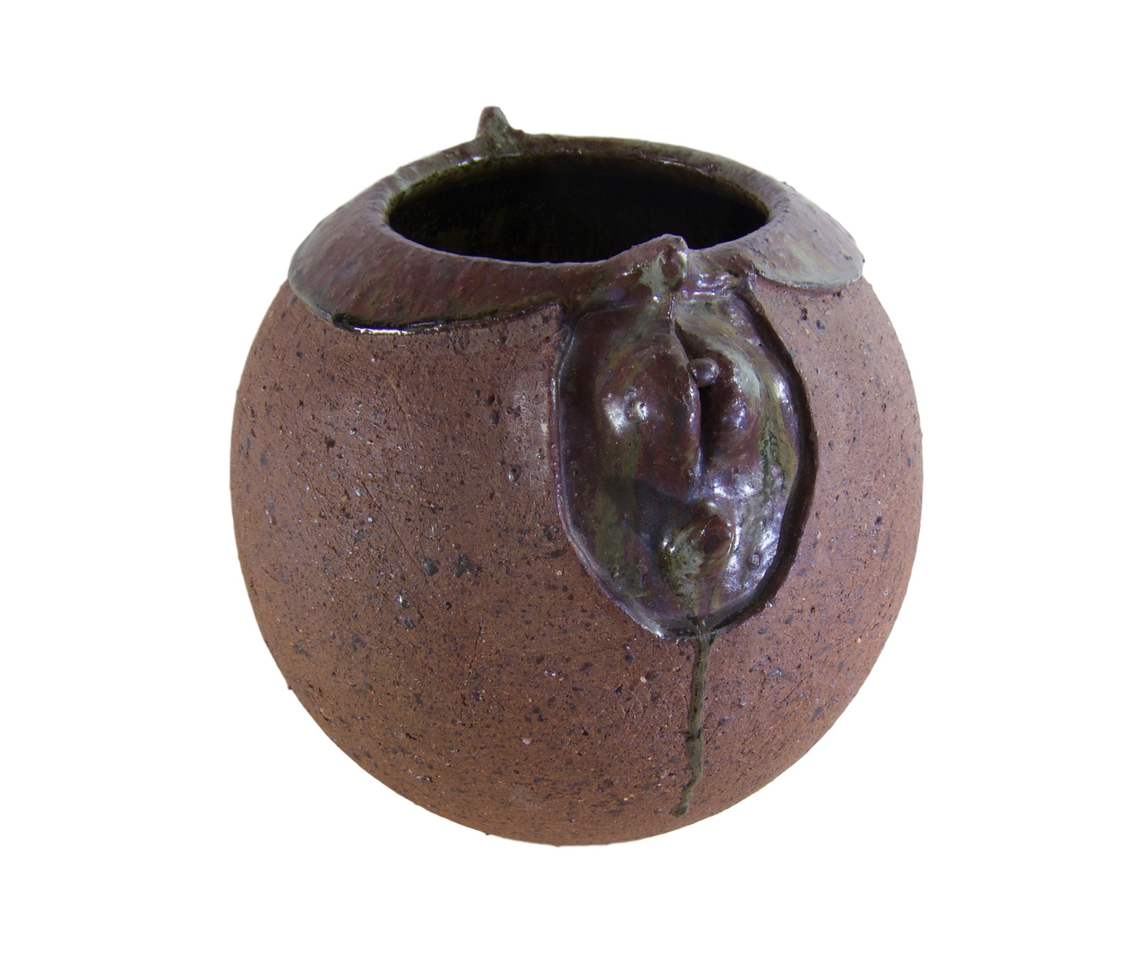 A large b\ulbous horned vase formed studio pottery vessel by American ceramicist Robert Sperry.