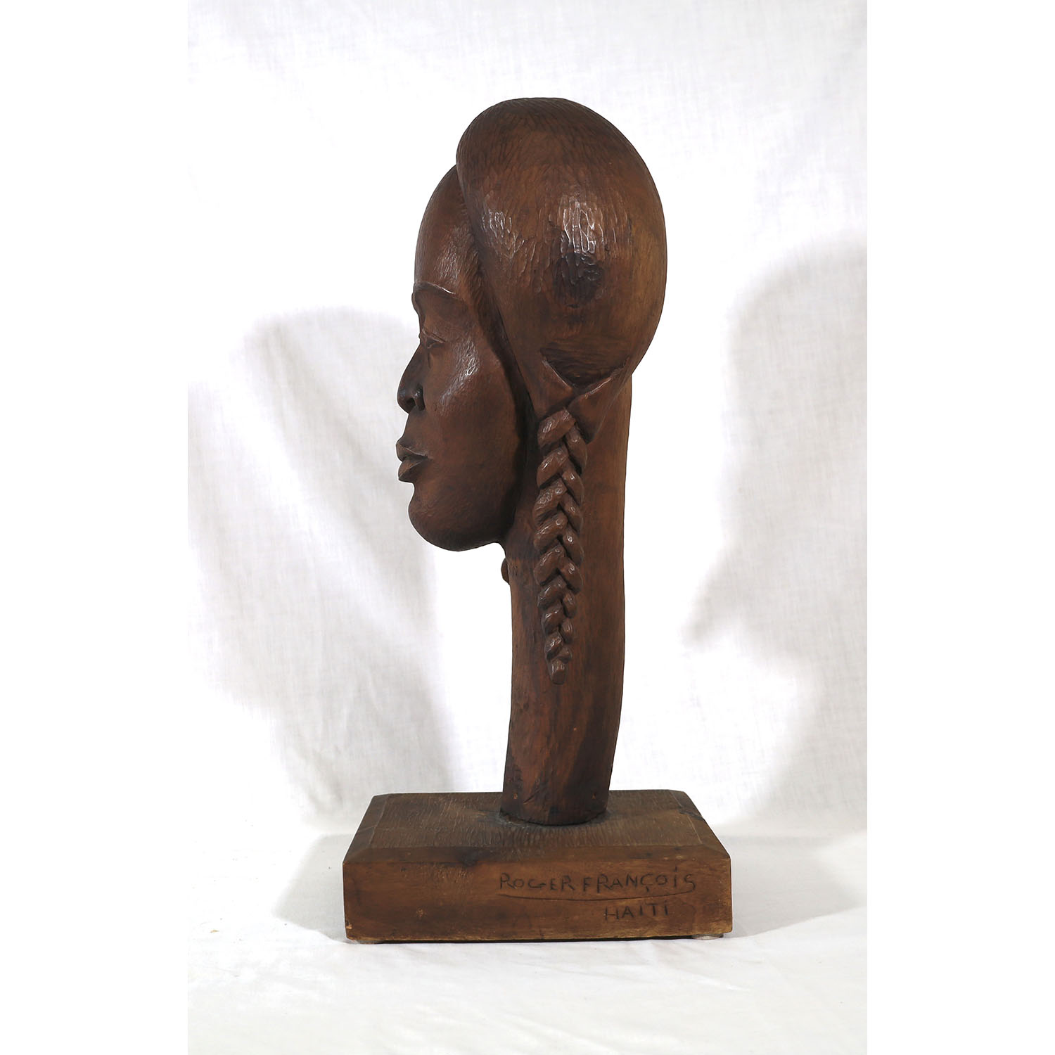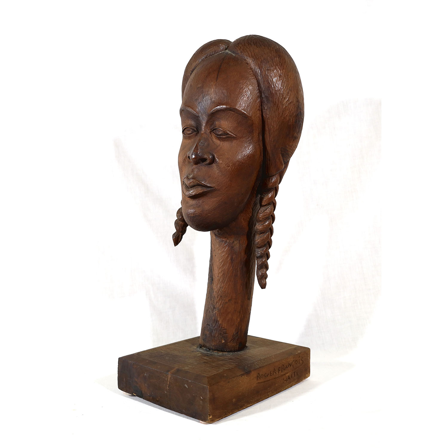 Roger Francois - Girl with Pigtails Carved wood sculpture of a young Haitian girl with pigtails. c1960. Signed by the artist. Measures 22 x 9.8 x 8 inches. Price $2500 Project navigationPreviousPrevious project:Robert Fritz – Manipulated Studio Glass SculptureNextNext project:Junko Kitamura 北村純子 – Vessel