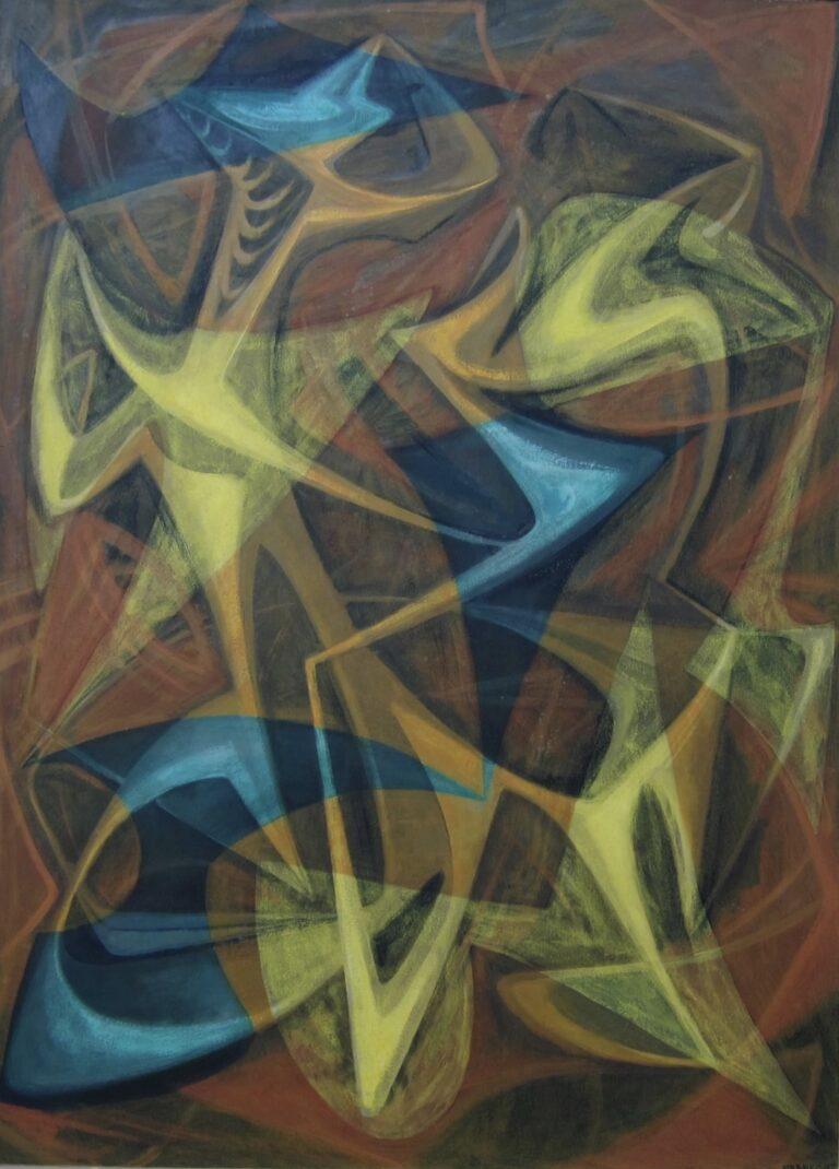 Seymour Franks, 1916-1981, was born in New York City in 1916. At the age of 16, Franks was stricken with polio. He went on to work for the WPA and later studied at the National Academy of Design in 1937. Early in his career, he created colorful modernist abstractions with biomorphic tendencies. He later became an abstract expressionist as did so many other New York-based artists of the time. Although isolated in hospitals as a young man Franks became a successful artist and continued to work throughout his life as an artist and designer, showing at prestigious venues including the Pennsylvania Academy of Fine Art in 1944 and 1954, The Whitney Museum of American Art from 1946-48, 1950, 1952, the Brooklyn Museum in 1949 and 1951, the Art Institute of Chicago in 1947, the Peridot Gallery in1948, 1950-55, the University of Nebraska in 1951, and at the University of Illinois in 1952.