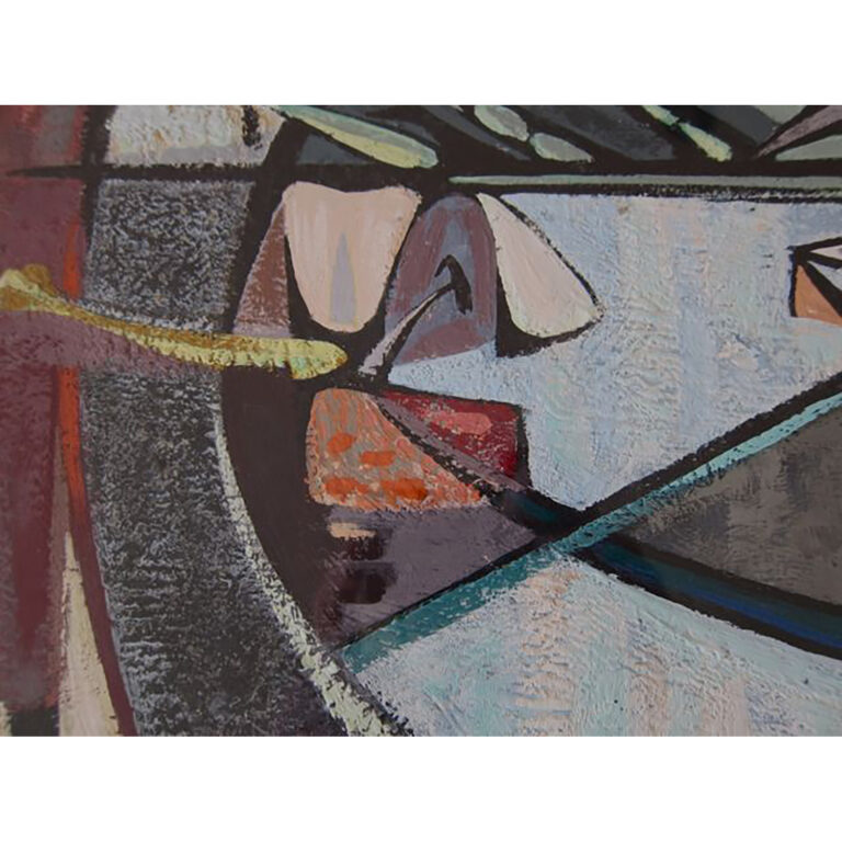 Virginia Banks (1920 – 1985) was a well-known Northwest artist based in Seattle. She was born in Norwood, Massachusetts, and received her bachelors degree from Smith College in 1941, and a master of arts from the University of Iowa in 1944. She moved with him to Seattle in 1948. Banks participated in many major exhibitions at galleries in New York City, including the Grand Central Moderns. She taught art for much of her career, including at the State University of Iowa (1942-47), the University of Buffalo, New York (1947-48), and the Cornish Art School in Seattle, Washington (1951-52).